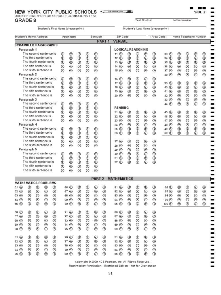 You can complete the exam in any order. Two sample SHSAT answer sheets are provided in the packet on the Specialized High Schools webpage. Www bxscience edu Email.